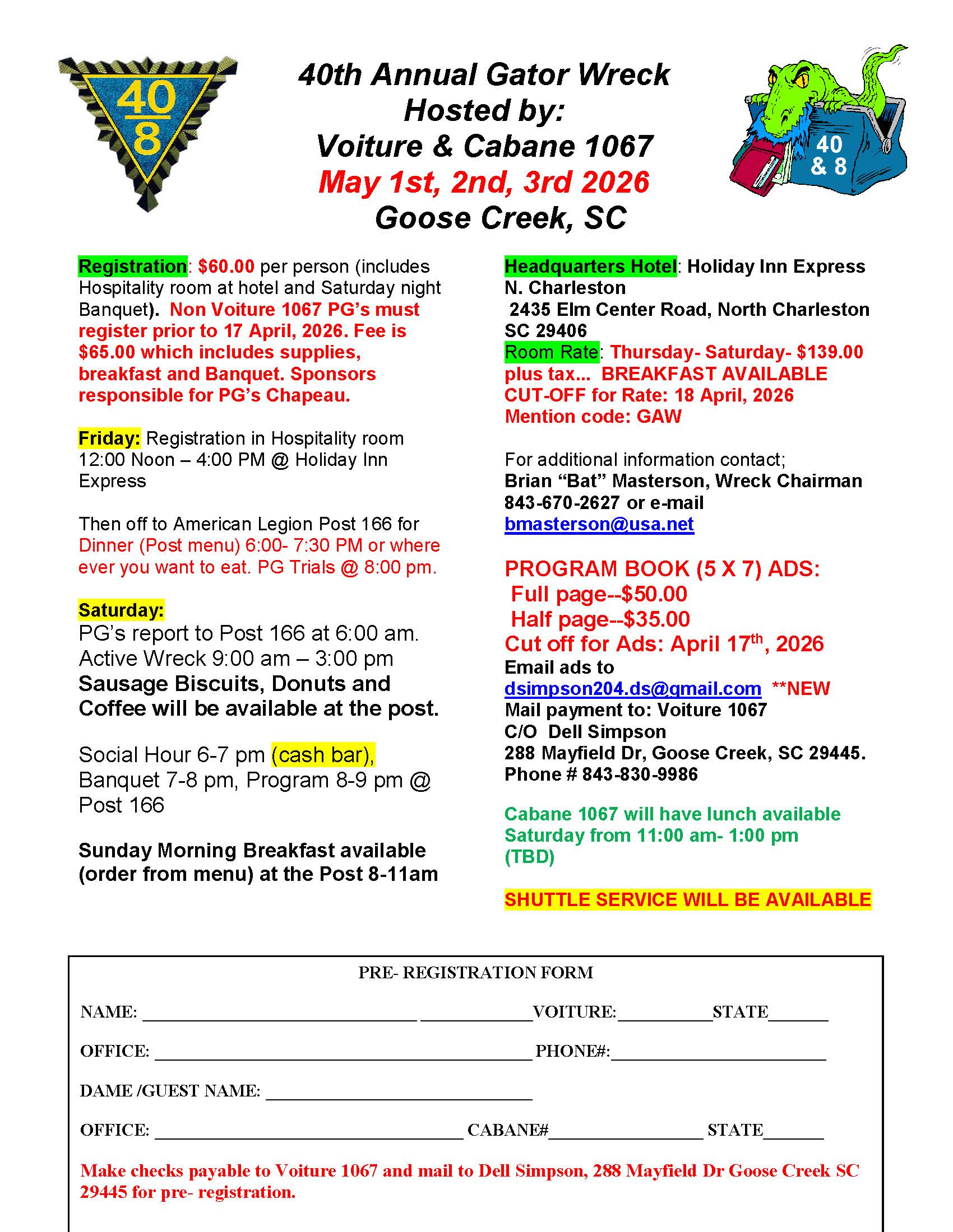 Mark your calendar for May 1-3, 2026 in Goose Creek, South Carolina.