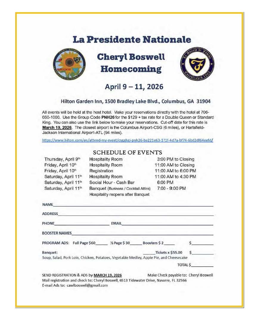 2026 La Presidente National Cheryl Boswell's Homecoming